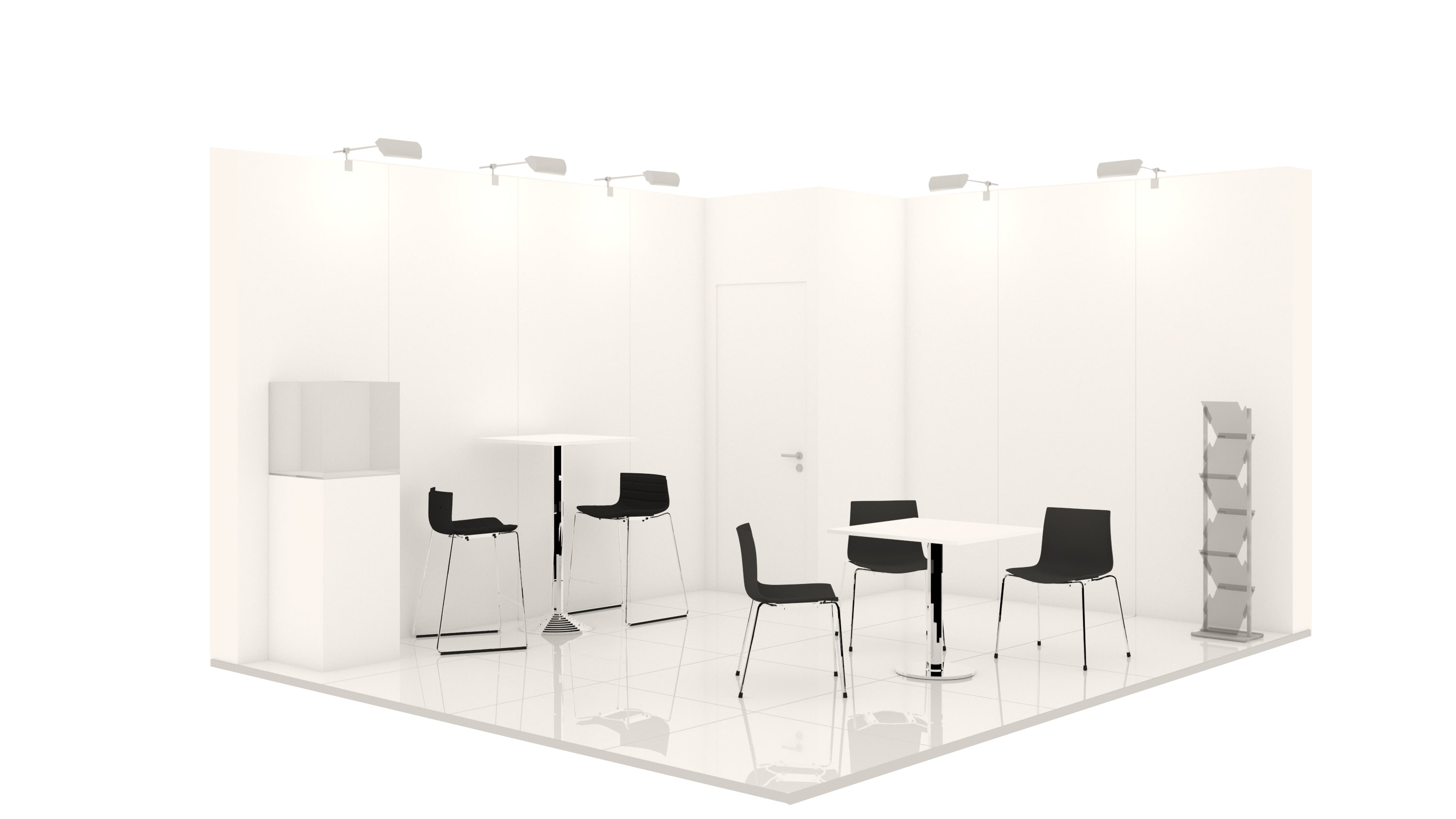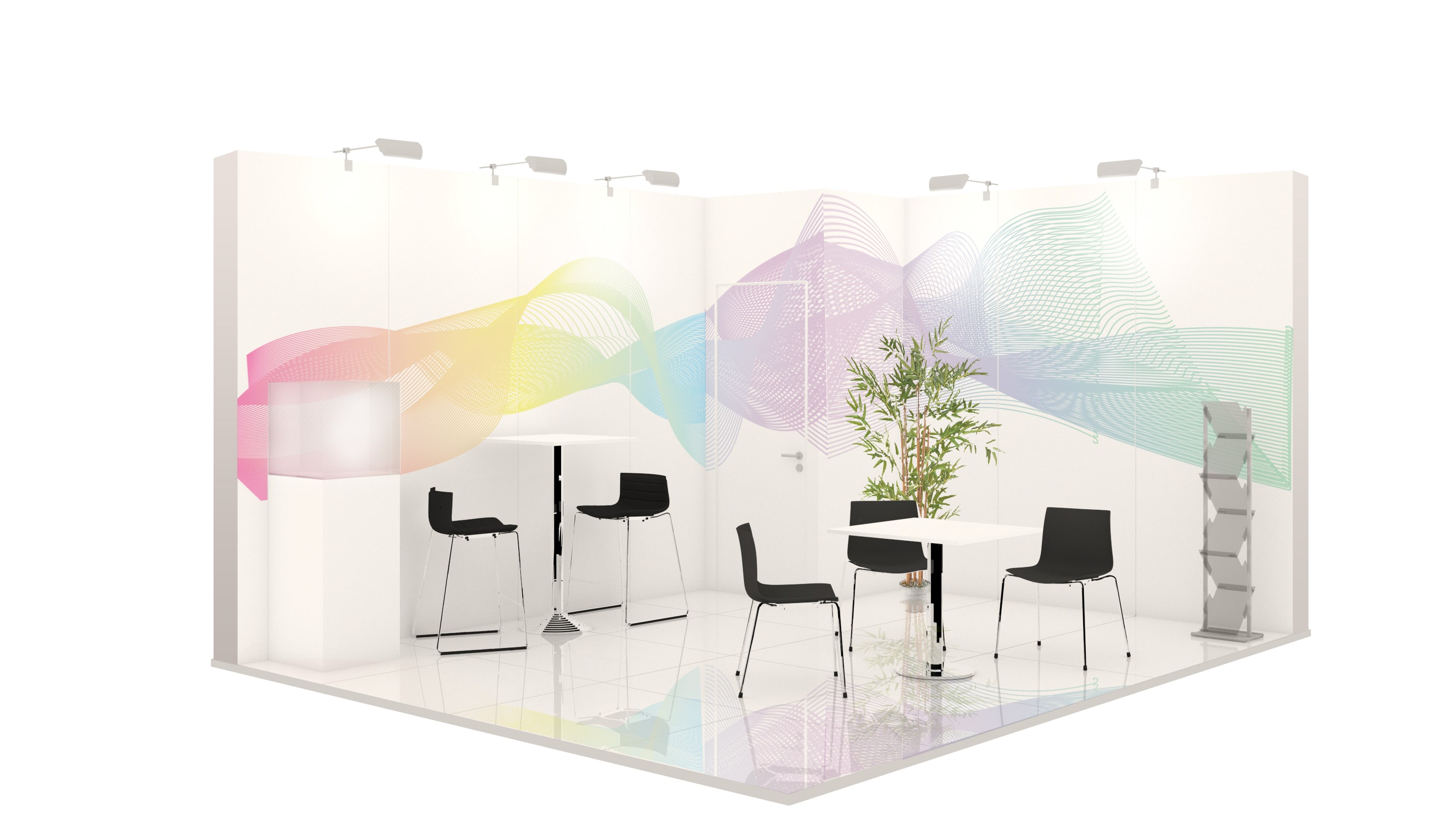 The illustration of the stand shown is an example and may differ from the stand space and type booked. Stand visuals may include additional equipment and graphic elements that are subject to a charge.